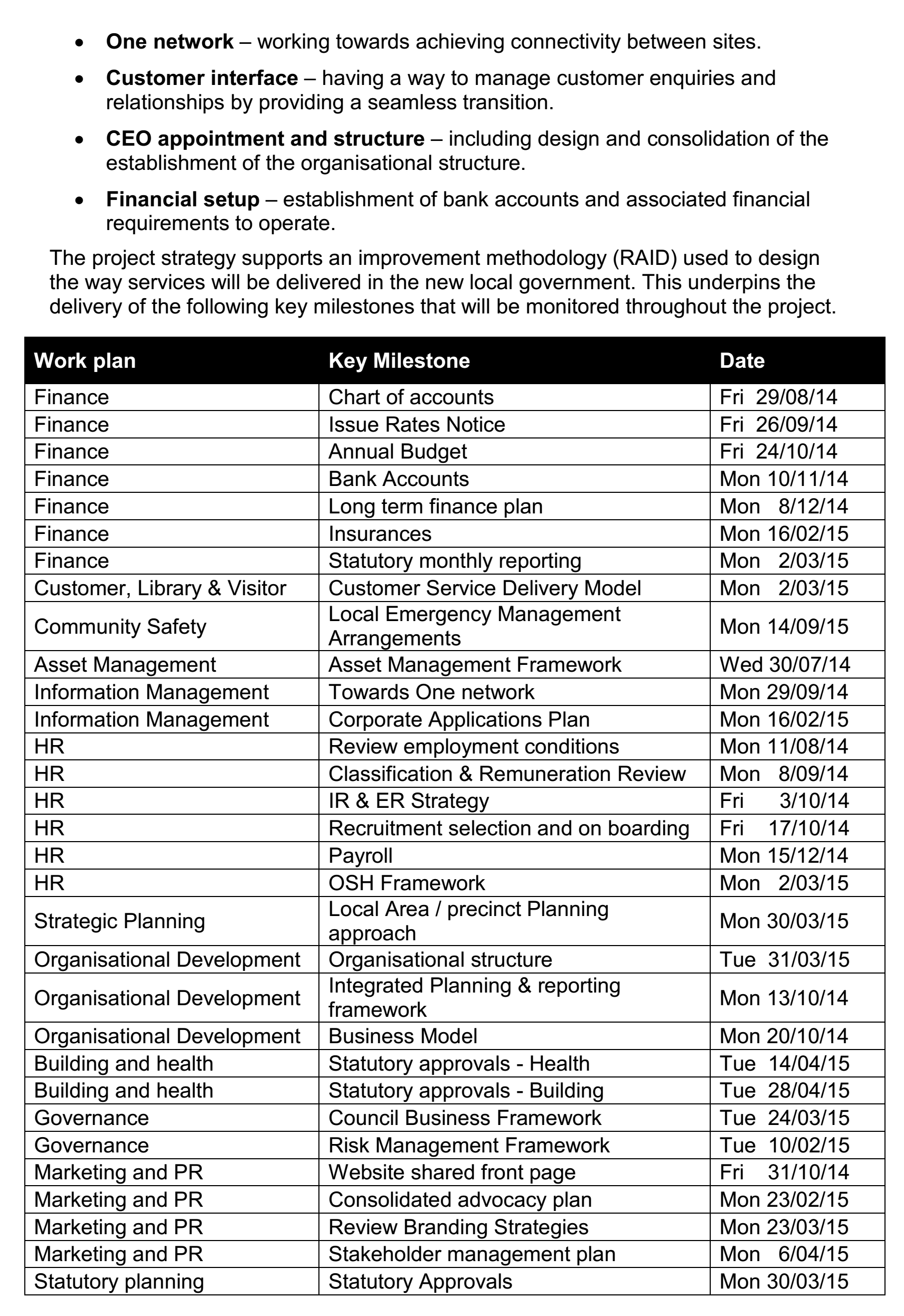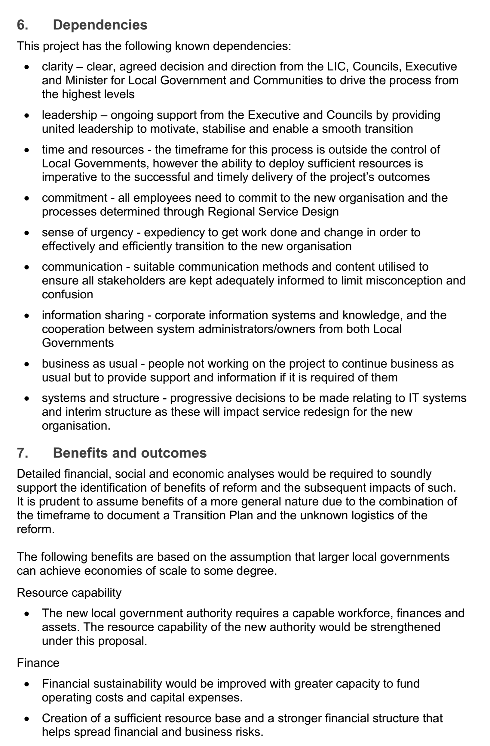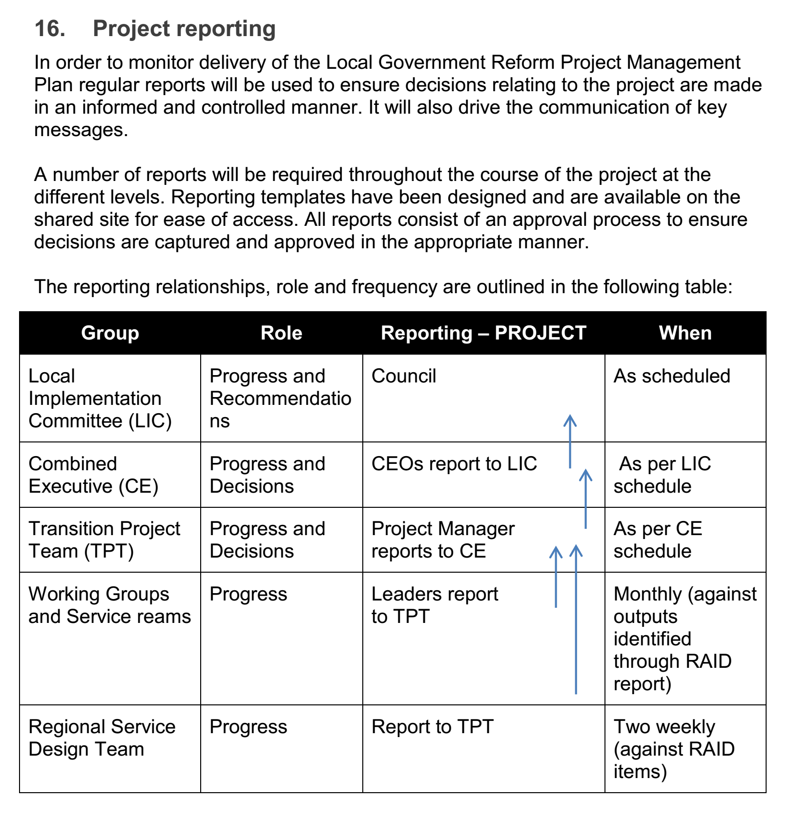 On this background, the PMP under discussion, which is the Swan Mundaring Reform Project Management Plan, is developed to deliver a transition plan that prepares and manages the transition to the new local government identity, convering the current districts of the Shire of Mundaring and City of Swan. This project is delivered within the two existing organizations through working gropus and includes people, processes, contractors and assets. The Combined Executive (CE) and Local Implementation Committee (LIC) are responsible for monitoring the progress of the project.