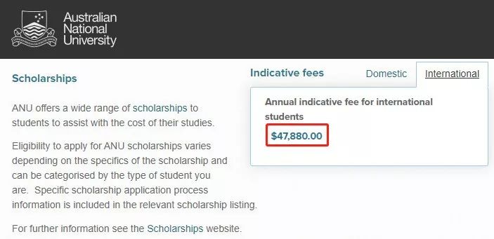 看看澳國立這赤果果的學(xué)費(fèi),一點(diǎn)都沒有比其他大學(xué)少,2020年商科漲到47880澳幣!澳洲QS排名第一的學(xué)校不是說說而已哦!