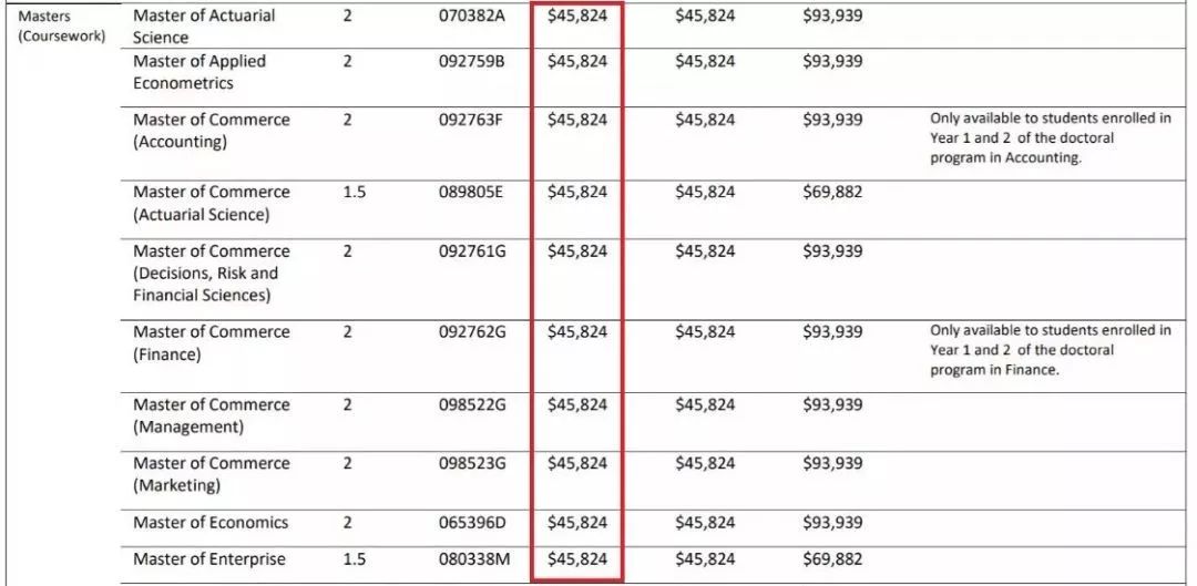 2020年商科從19年的43400澳幣直接漲到45800澳幣!