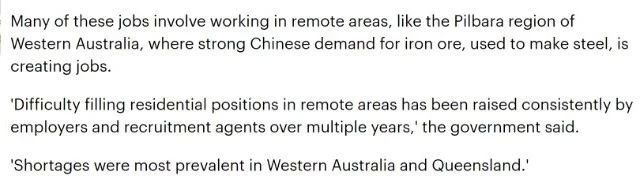 其中不少工作機會要到偏遠地區(qū),比如西澳的Pilbara等等一些不少與中國合作的工程項目。