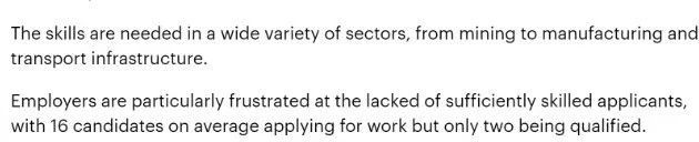 Department of Employment表示,該行業(yè)的人才短缺問題僅在2019年突顯。