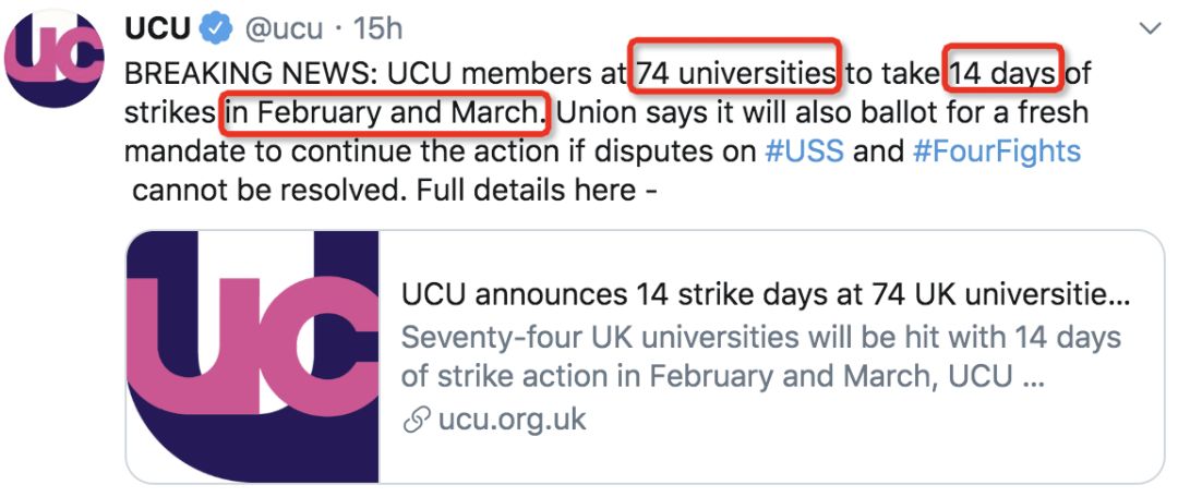 不過,還要給同學(xué)們特殊解釋下,此次罷工并不是所有的老師都會不上課,只有那些屬于罷工工會(UCU)的老師會選擇罷工。而且罷工是自愿行為,老師們也完全可以選擇上完課后,出了教室再拿起牌子抗議。