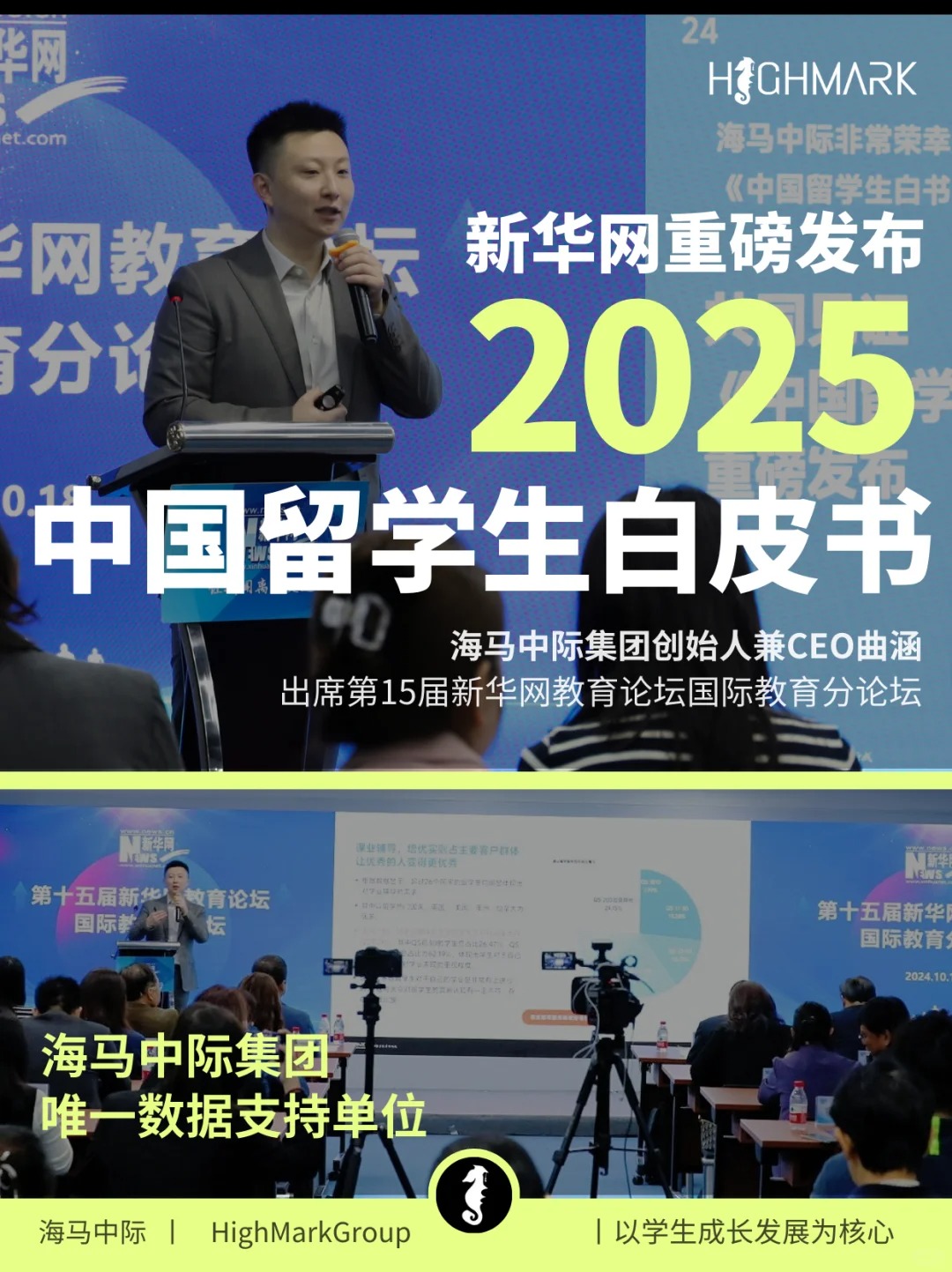 10月18日第十五屆新華網教育論壇國際教育分論壇在北京成功舉辦,并在會議中發(fā)布了《中國留學生白皮書》。作為此次《白皮書》唯一的數據技術支持單位,海馬中際集團創(chuàng)始人兼CEO曲涵先生代表海馬出席發(fā)布儀式,共同見證了《中國留學生白皮書》的重磅發(fā)布??