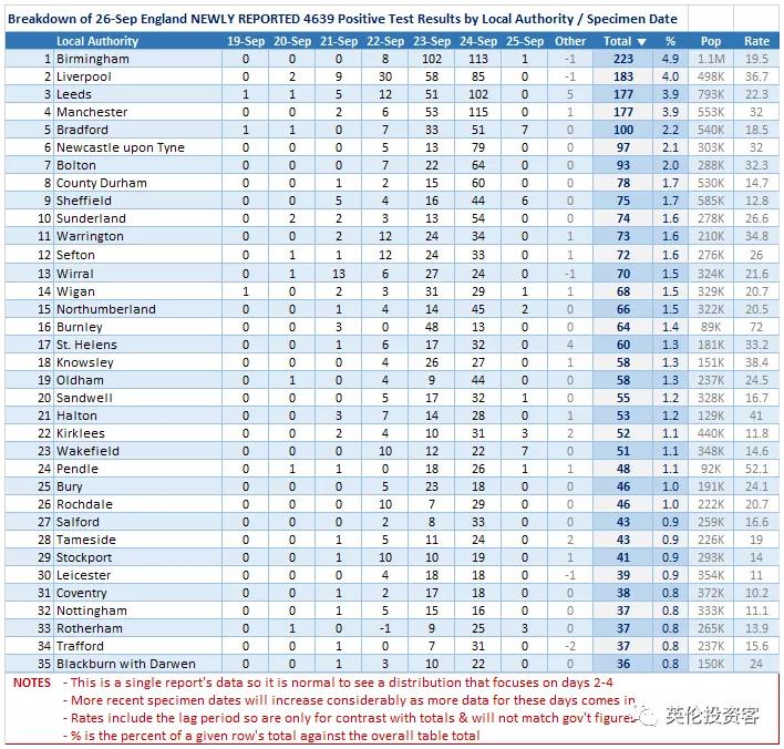 下圖是英國(guó)今日新增確診的具體分布,主要列出排名前35的城市。