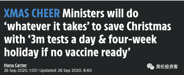 《每日快報(bào)》稱,政府仍寄希望于未來每天進(jìn)行300萬次新冠測(cè)試,并在12月前推出疫苗。