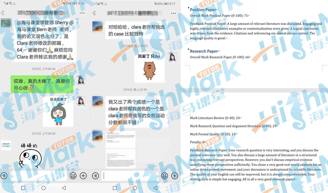 從開始選擇海馬課堂的學(xué)術(shù)寫作精品班課到學(xué)期論文作業(yè),老師一整個學(xué)期的全程論文陪同跟蹤輔導(dǎo),硬是把他從寫作小白變成高分大神!成績斐然。