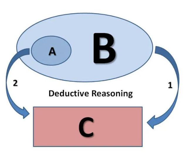 這里的推導(dǎo)就省略了一步:凡是贏了半決賽的選手(大群B),都可以進(jìn)入總決賽(結(jié)論C)。這一步推導(dǎo)是大家都公認(rèn)的,沒有疑問的,所以往往就省略掉了。無論怎樣,請(qǐng)大家記住Deductive Reasoning是“由大到小”的推導(dǎo)。