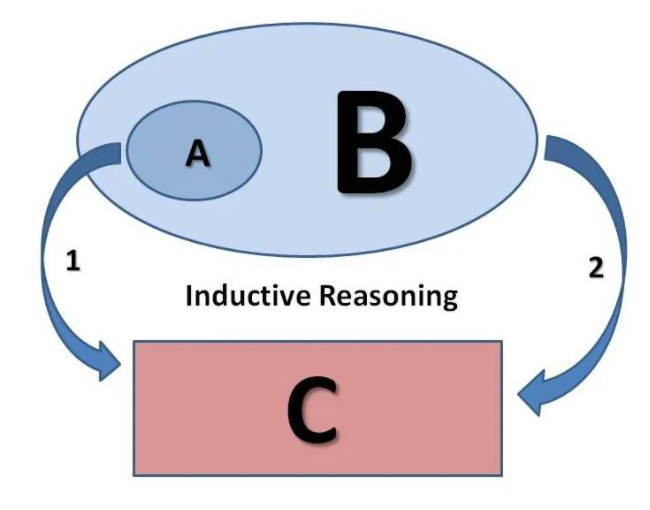在我們?nèi)粘I钪?,和學(xué)術(shù)寫作中,甚至科研學(xué)習(xí)中,比較容易犯錯(cuò)的是Inductive Reasoning。與Deductive Reasoning相反,它的推導(dǎo)過程是: