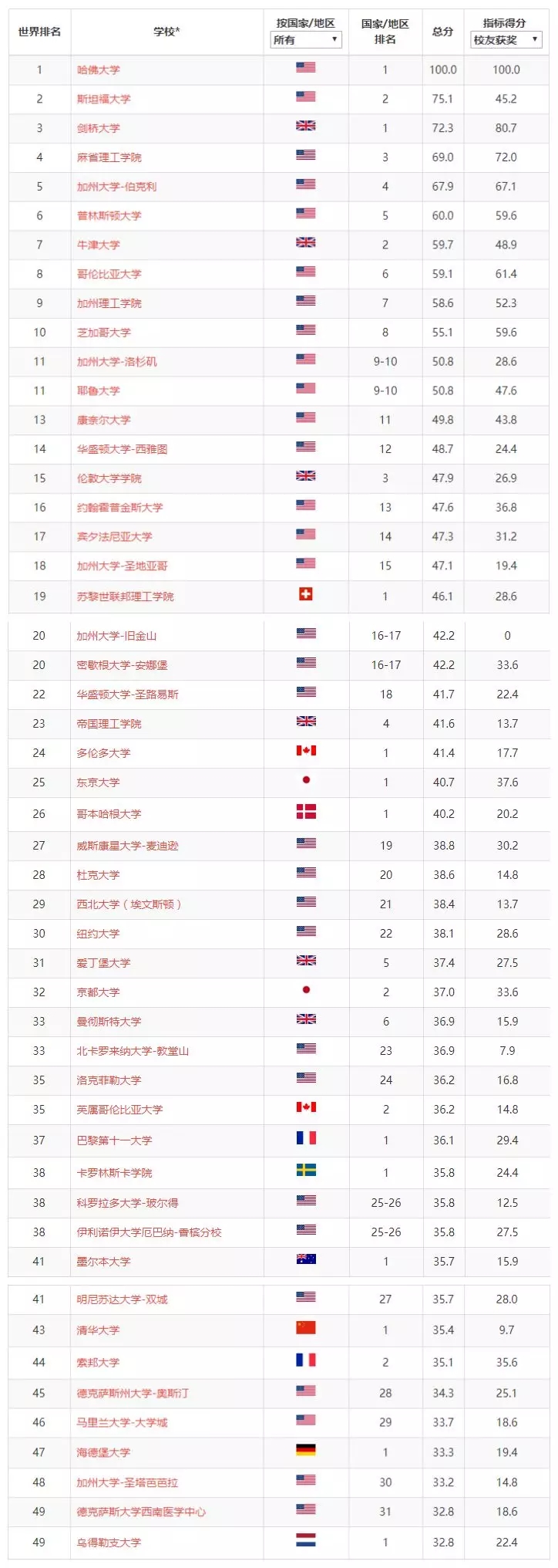乍眼看過去,都是認識的大學(xué)。不過這排名的先后順序,與QS、TIMES等也有差別。