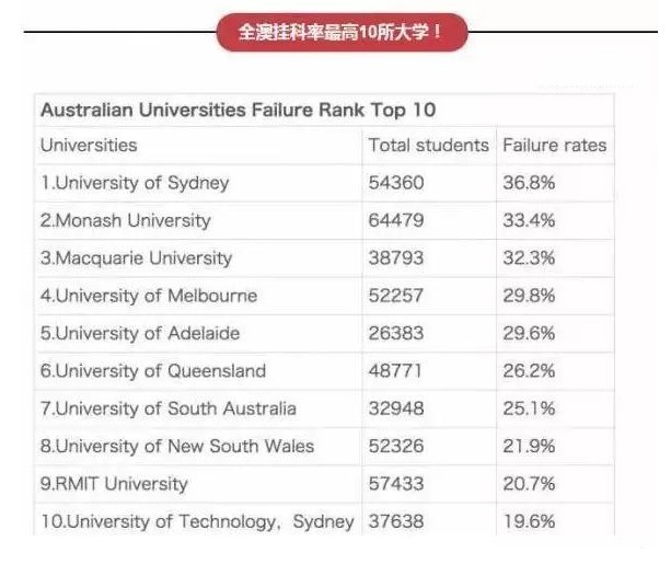 澳洲留學向來以高掛科率聞名世界(bushi,悉尼的平均掛科率已經(jīng)達到36.8%,意味著什么?十個人就有四個掛科的學生?。。?!以下是澳洲掛科率最高的十所學校,大家可以借此了解一下澳洲嚴苛的學業(yè)要求: