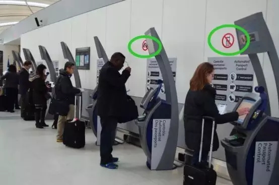 其實(shí),不僅僅是過(guò)海關(guān)的時(shí)候,只要墻上貼有這樣的標(biāo)識(shí),在這個(gè)區(qū)域內(nèi),你都不能使用手機(jī)。