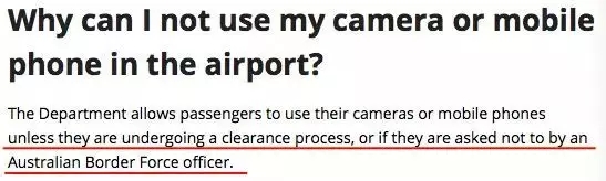 這絕對(duì)不是危言聳聽(tīng)哦,據(jù)澳大利亞內(nèi)政事務(wù)部(Department of Home Affairs)網(wǎng)站發(fā)布的相關(guān)規(guī)定,任何形式的通訊和拍攝設(shè)備,在機(jī)場(chǎng)、海港的海關(guān)和邊境控制區(qū)內(nèi),特別是在通關(guān)過(guò)程中,都是禁止的!