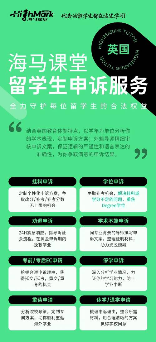 在 KCL 數(shù)學(xué)系遇到掛科問(wèn)題時(shí),不要驚慌失措。先仔細(xì)了解學(xué)校的掛科政策,然后根據(jù)自身情況選擇合適的處理方法。HighMark 申訴項(xiàng)目組將憑借其專(zhuān)業(yè)優(yōu)勢(shì),全力協(xié)助同學(xué)們應(yīng)對(duì)掛科危機(jī),保障學(xué)業(yè)的順利進(jìn)行。如果您正處于掛科困境中,歡迎隨時(shí)聯(lián)系 HighMark 申訴項(xiàng)目組,開(kāi)啟您的學(xué)業(yè)挽救之旅。